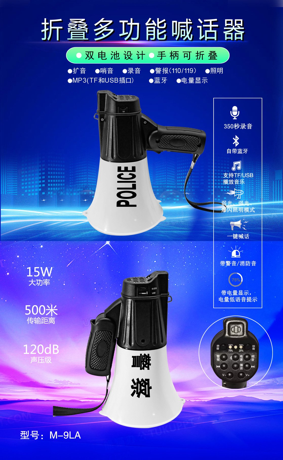• 專業(yè)設(shè)計(jì),外觀獨(dú)特、新穎,操作簡便的多功能喊話器