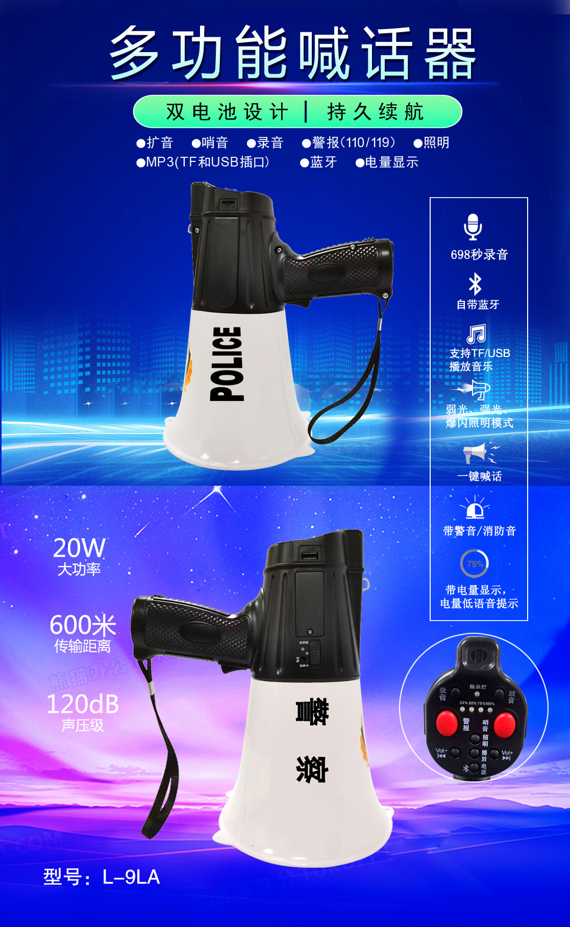 • 專業(yè)設(shè)計(jì),外觀獨(dú)特、新穎,操作簡便的多功能喊話器
