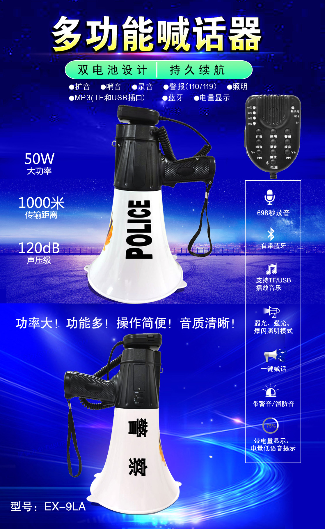 • 專(zhuān)業(yè)設(shè)計(jì),外觀獨(dú)特、新穎,操作簡(jiǎn)便的多功能喊話(huà)器