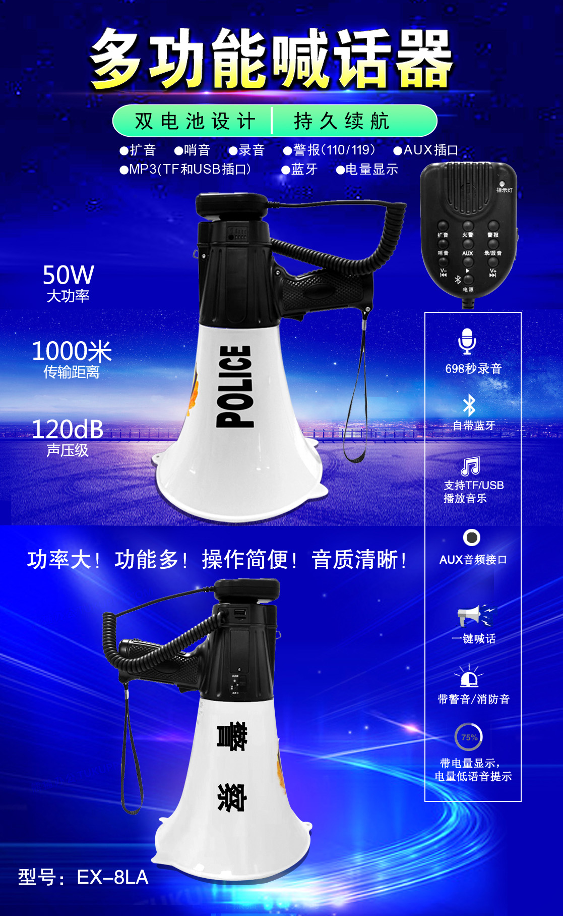 • 專(zhuān)業(yè)設(shè)計(jì),外觀獨(dú)特、新穎,操作簡(jiǎn)便的多功能喊話(huà)器